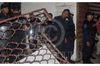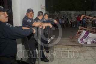 TEAPA, TABASCO, 10JUNIO2014.-Un grupo de activistas del Partido Verde Ecologista de México, encabezado por María del Carmen López Rivera, alias Marimar, irrumpió en el edificio sede del XXI Distrito Electoral, en donde se contabilizaban los votos de la actas cuando supuestamente intentaban sustraer material electoral. La mujer no pudo lograr su cometido sin embargo realizó destrozos con la finalidad de boicotear dicho proceso. nte Elementos de la Policía Estatal, Ejército Mexicano y Policía Municipal resguardan el inmueble ubicado en la colonia El Mure. FOTO: MARCO POLO GUZMÁN HERNÁNDEZ /CUARTOSCURO.COM