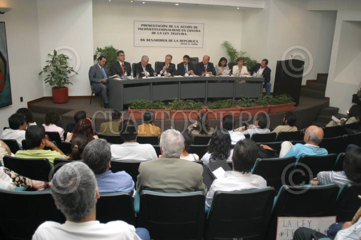 MÉXICO D.F. 04MAYO2006.- Los Senadores Javier Corral, Manuel Bartlet junto con los abogados José Luis Sambrano y Mariana Benitez, acudieron a levantar una denuncia en contra de la Inconstitucionalidad de la Ley Televisa, en la Suprema Corte de justicia. FOTO: Diego Gallegos/CUARTOSCURO.COM