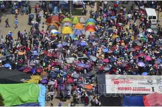 MÉXICO, D.F., 11JUNIO2015.- Maestros reforzaron el campamento que mantienen sobre la Plaza de la República, tras la decisión de Segob de no dialogar con los maestros de la Coordinadora Nacional de Trabajadores de la Educación hasta que regresen a las aulas. Los docentes fijaron su postura al hacer público que continuarán con las movilizaciones. La imagen se realizó desde el mirador del Museo Nacional de la Revolución, que a pesar de las movilizaciones continúa con sus actividades. FOTO: MARÍA JOSÉ MARTÍNEZ /CUARTOSCURO.COM