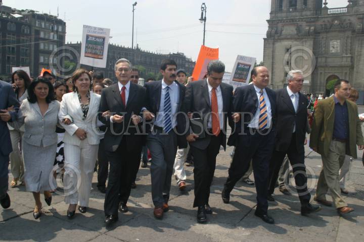 MÉXICO D.F. 04MAYO2006.- Los Senadores Javier Corral, Manuel Bartlet junto con los abogados José Luis Sambrano y Mariana Benitez, acudieron a levantar una denuncia en contra de la Inconstitucionalidad de la Ley Televisa, en la Suprema Corte de justicia. FOTO: Diego Gallegos/CUARTOSCURO.COM