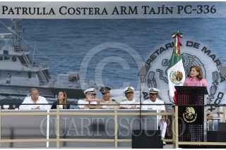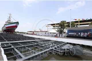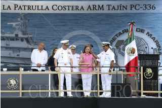 TAMPICO, TAMAULIPAS, 12JUNIO2015.- La Procuradora General de la República, Arely Gómez González, amadrino la patrulla costera "Armada República Mexicana Tajín PC-336". En la ceremonia de botadura de la patrulla estuvo acompañada del secretario de marina, Almirante Vidal Francisco Soberón Saenz y el gobernador del estado de Tamaulipas, Egidio Torres Cantú, en el astillero número uno, de la Secretaría de Marina Armada de México. FOTO: CUARTOSCURO.COM