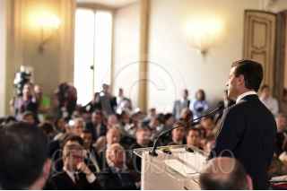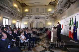 MILÁN, REPÚBLICA DE ITALIA, 12JUNIO2015.- Durante su participación en el Foro de Negocios México-Italia, el Presidente Enrique Peña Nieto, sostuvo que en democracia, y con acuerdos, en nuestro país se puede abrir la senda a la prosperidad y el desarrollo. En el encuentro entre empresarios de ambas naciones, el Primer Mandatario estuvo acompañado por el Presidente del Consejo de Ministros de la República Italiana, Matteo Renzi. FOTO: PRESIDENCIA /CUARTOSCURO.COM