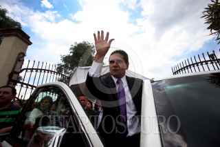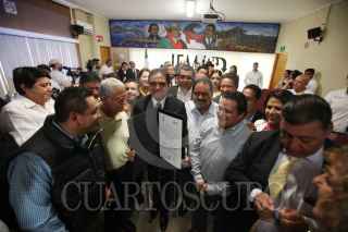 MORELIA, MICHOACÁN, 14JUNIO2015.- Silvano Aureoles Conejo, candidato de los partidos de la Revolución Democrática (PRD), del Trabajo (PT) y Nueva Alianza (PANAL), recibió el mediodía de este domingo en el Instituto Electoral de Michoacán (IEM) la constancia de mayoría que lo acredita como gobernador electo de Michoacán. FOTO: ALAN ORTEGA /CUARTOSCURO.COM