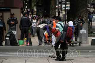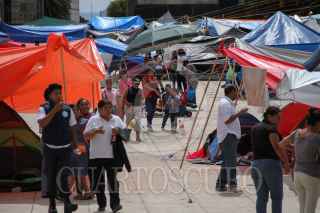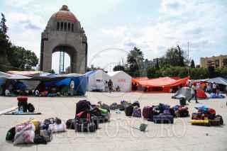 MÉXICO, D.F., 14JUNIO2015.- Maestros de la Coordinadora Nacional de Trabajadores de la Educación sección 22, levantan parte del plantón que mantienen en la plaza de la república, en el Monumento a la Revolución. FOTO: ADOLFO VLADIMIR /CUARTOSCURO.COM