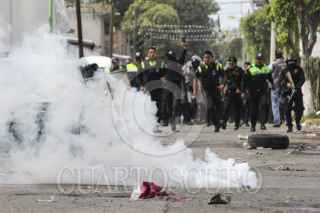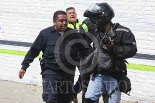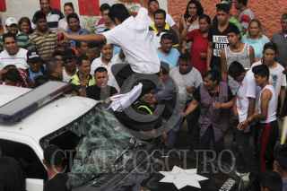 ECATEPEC, EDO. MEX., 14JUNIO2015.- Un fuerte enfrentamiento entre Policías Municipales y pobladores de Santa Maria Tupetlac se registro en este Municipio, debido a que los vecinos detuvieron a tres presuntos delincuentes que robaban a un taxista, en la esquina de Colima y Sinaloa. Los colonos atraparon a los ladrones e intentaron lincharlos, policías municipales llegaron al lugar para rescatarlos. Los vecinos se enfrentaron a los policías en un intento de hacer justicia por su propia mano. FOTO: DIEGO REYES /CUARTOSCURO.COM