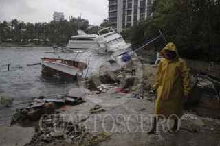 ACAPULCO, GUERRERO, 14JUNIO2015.- En la playa de manzanillo quedaron varados varias embarcaciones pertenecientes al club de yates, mientras que otras se hundieron en el mar. FOTO: BERNANDINO HERNÁNDEZ /CUARTOSCURO.COM