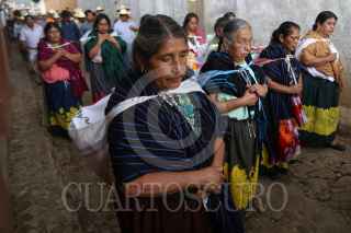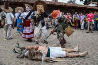 SANTA FE DE LA LAGUNA, MICHOACÁN. 14JUNIO2015.- La fiesta denominada Corpus tiene sus origenes desde hace muchísimo tiempo, incluso antes de la llegada de los españoles (prehispánico). Para los Purépecha ésta fiesta era un acto de agradecimiento para sus Dioses que veneraban, principalmente Tatá Jurhiata y Naná Xarhátani (Xaratanga) y se desarrollaba haciendo referencia a los ciclos agrícolas. Agradecían por las buenas cosechas y a la vez pedían por un excelente temporal para la siembra del maíz principalmente. Con la llegada de los españoles junto a su religión católica y junto a su "evangelización" convirtieron ésta tradición Purépecha a una simple actividad católica, nombrándola entonces como Corpus Christi. Hoy en dia ésta fiesta tiende a sentirse un poco mágico puesto que hay partes de la fiesta en las que todavía se manifiestan algunos aspectos y tradiciones muy de los Purépecha Tua anapuecha (P'urhépecha pre-hispánico). FOTO: JUAN JOSÉ ESTRADA SERAFÍN /CUARTOSCURO.COM