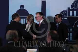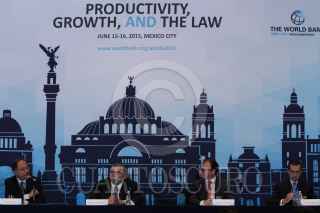 MÉXICO, D.F., 15JUNIO2015.- Se llevo acabo por primera vez en México la conferencia anual de desafío económico, organizada por el Banco Mundial y en Banco de México en conjunto. El tema principal de este año es: Productividad, Crecimiento y Derecho. La inauguración fue presidida por Kaushik Basu, Vicepresidente del Banco Mundial; Agustín Cartstens, gobernador del Banco de México; Luis Videgaray, secretario de finanzas y Jorge Familiar, vicepresidente del banco mundial en América Latina y el Caribe. FOTO: ISABEL MATEOS /CUARTOSCURO.COM
