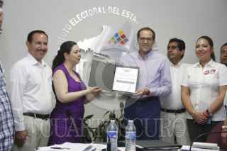 COLIMA, COLIMA, 15JUNIO2015.- José Ignacio Peralta Sánchez, candidato del PRI-PVEM al gobierno de Colima recibió la constancia de mayoría de la elección en las instalaciones del Instituto Electoral del Estado. FOTO: CUARTOSCURO.COM
