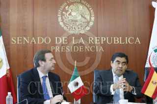 MÉXICO, D.F., 15JUNIO2015.- Miguel Barbosa Huerta, presidente del Senado de la República, se reunió con el embajador de España en México, Luis Fernández Cid de las Alas Pumariño, para revisar los detalles técnicos-logísticos de la sesión solemne que la Comisión Permanente del Congreso de la Unión realizará el próximo 30 de junio para recibir a los Reyes de España Felipe VI y Letizia. FOTO: CUARTOSCURO.COM