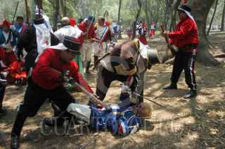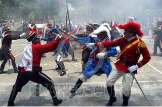 MEXICO D.F. 05MAYO2006.- En el bosque de Chapultepec se realizo por primera vez la representación de la batalla de Puebla entre los ejercitos de Francia y México. FOTO: Germán Romero/CUARTOSCURO.COM