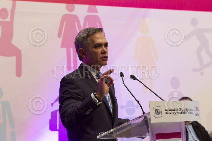 MÉXICO, D.F., 16JUNIO2015.- Miguel Ángel Mancera, Jefe de Gobierno, y María Fernanda Olvera Cabrera, titular del Injuve DF, durante el lanzamiento de la estrategia de salud, balance y bienestar joven, en el Antiguo Palacio del Ayuntamiento. FOTO: MOISÉS PABLO /CUARTOSCURO.COM