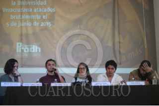 MÉXICO, D.F., 16JUNIO15.- Estudiantes violentamente agredidos el pasado 5 de junio del año en curso por un grupo de encapuchados dentro de su domicilio particular en la ciudad de Xalapa, acompañados por sus padres, académicos y activistas del estado de Veracruz además de integrantes de SeraPaz encabezados Alberto Solís, ofrecieron una conferencia de prensa en las instalaciones del ProDH para dar a conocer en voz de los afectados testimonios de la agresión y solicitar apoyo por parte de organizaciones en defensa de los derechos humanos a nivel nacional e internacional, así como apoyo de abogados para fortalecer el equipo jurídico con el que cuentan en el estado, esto ante la desconfianza que tiene en las instituciones de la entidad veracruzana. FOTO: RUBÉN ESPINOSA /CUARTOSCURO.COM