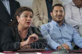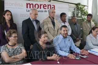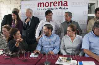 MÉXICO, D.F., 17JUNIO15.- Los ex candidatos a jefes delegacionales, Bertha Lujan, de Coyoacán; Clara Brugada, de Iztapalapa; Patricia Ruiz Anchondo, de Venustiano Carranza; Héctor Vasconcelos, de Miguel Hidalgo; Jesús González Schmal, por Benito Juárez; Ramón Jiménez López, de Gustavo A. Madero, en compañía de Martí Batres, presidente del CEN de Morena, organizaron una conferencia de prensa para hablar sobre los recursos de impugnación que utilizaran ante el Tribunal Electoral del Distrito Federal y la FEPADE debido a las irregularidades que se presentaron durante las elecciones del pasado 7 de junio. Batres señaló que Morena promoverá la anulación de las elecciones para jefe delegacional de Iztapalapa, Coyoacán y Venustiano Carranza, además de que exigirá el recuento de votos en Gustavo A. Madero, Iztacalco y Magdalena Contreras. FOTO: DIEGO SIMÓN SÁNCHEZ /CUARTOSCURO.COM