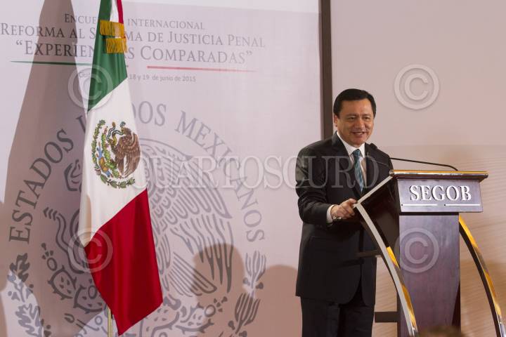 MÉXICO, D.F., 18JUNIO2015.- Miguel Ángel Osorio Chong, Secretario de Gobernación, durante la inauguración del encuentro internacional sobre la "Reforma al Sistema de Justicia Penal: Experiencias Comparadas" que se realizó en la sede de la cancillería. FOTO: MOISÉS PABLO /CUARTOSCURO.COM