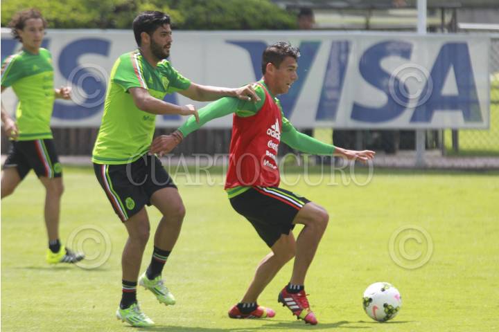 MÉXICO, D.F., 19JUNIO2015.- Entrenamiento de la Selección Mexicana de Fútbol que disputará la Copa Oro 2015. La concentración se realizó en el Centro de Alto Rendimiento, al que asitieron jugadores como Carlos Vela, Andrés Guardado, Guillermo Ochoa, Jonathan dos Santos, Giovani dos Santos, Francisco Javier Rodríguez, entre otros, dirigidos por el auxiliar técnico, Santiago Baños, debido a que el entrenador Miguel Herrera está en Chile por la Copa América. FOTO: CUARTOSCURO.COM