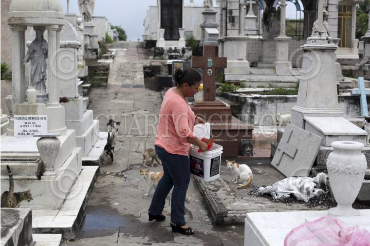 VERACRUZ, VERACRUZ., 19JUNIO2015.- Cerca de 150 gatos desaparecieron misteriosamente del Panteón Particular de Veracruz, lugar donde vivían después de ser abandonados por sus dueños. Protectoras de la organización "Corazón Gatuno", que se dedican a cuidar las colonias de felinos que habitan el panteón, calificaron como un exterminio los sucesos registrados durante las últimas semanas. FOTO: FÉLIX MÁRQUEZ / CUARTOSCURO.COM