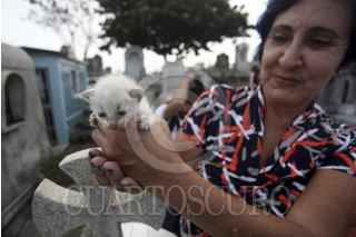 VERACRUZ, VERACRUZ., 19JUNIO2015.- Cerca de 150 gatos desaparecieron misteriosamente del Panteón Particular de Veracruz, lugar donde vivían después de ser abandonados por sus dueños. Protectoras de la organización "Corazón Gatuno", que se dedican a cuidar las colonias de felinos que habitan el panteón, calificaron como un exterminio los sucesos registrados durante las últimas semanas. FOTO: FÉLIX MÁRQUEZ / CUARTOSCURO.COM