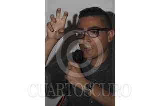 OAXACA, OAXACA, 19JUNIO2015.- El escritor Tryno Maldonado se presentó en el Instituto de Artes Gráficas de Oaxaca (IAGO) donde expuso su ponencia "Ayotzinapa: los rostros de los desaparecidos. En la que cuenta la situación que se vive en la escuela normal rural Raúl Isidro Burgos. FOTO: ARTURO PÉREZ ALFONSO /CUARTOSCURO.COM