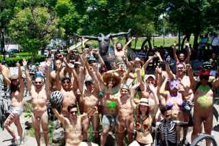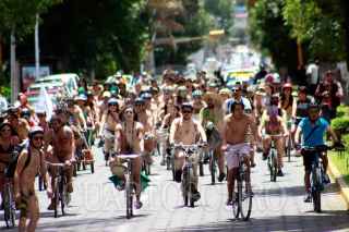 PUEBLA, PUEBLA, 20JUNIO2015.- Un centenar de ciclistas participaron en el World Naked Bike Ride, que recorrió las principales vialidades de la capital poblana, para pedir respeto para las personas que usan la bicicleta como medio de transporte. FOTO: HILDA RÍOS / CUARTOSCURO.COM