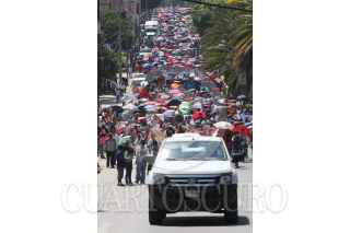 OAXACA, OAXACA, 20JUNIO2015.- Profesores de la sección 22 de la CNTE marcharon en la ciudad de Oaxaca para exigir la cancelación de la evaluación magisterial implementada por el Instituto Nacional para la Evaluación Educativa (INEE) y la Secretaría de Educación Pública (SEP). Debido al rechazo de la gremial, este examen fue cancelado en la entidad. En la manifestación participaron también los familiares de los detenidos el pasado 7 de junio acusados de terrorismo y que forman parte del Frente Popular Revolucionario (FPR). Son 25 personas a quienes se les dictó auto de formal prisión luego de presuntamente haber participado en el robo y quema de urnas el pasado 7 de junio. FOTO: ARTURO PÉREZ ALFONSO /CUARTOSCURO.COM