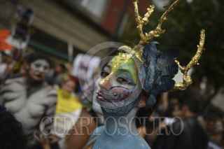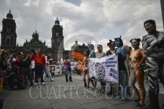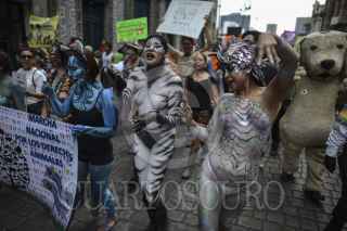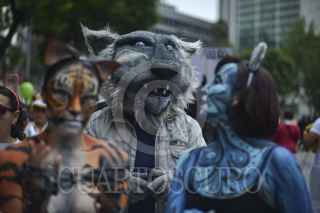 MÉXICO, D.F., 21JUNIO2015.- Organizaciones por la protección de los animales, marcharon del Ángel de la Independencia al Zócalo capitalino para demandar legislaciones con el fin de que acabe el maltrato a para todos los seres vivos, entre ellas las corridas de toros. FOTO: ADOLFO VLADIMIR /CUARTOSCURO.COM