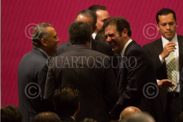 MÉXICO, D.F., 23JUNIO2015.- Enrique Peña Nieto, Presidente de México, y Miguel Barbosa, presidente de la mesa directiva del Senado, durante la instalación del Consejo del Sistema Nacional de Transparencia, Acceso a la Información y Protección de Datos Personales, en evento realizado en el WTC. FOTO: MOISÉS PABLO /CUARTOSCURO.COM