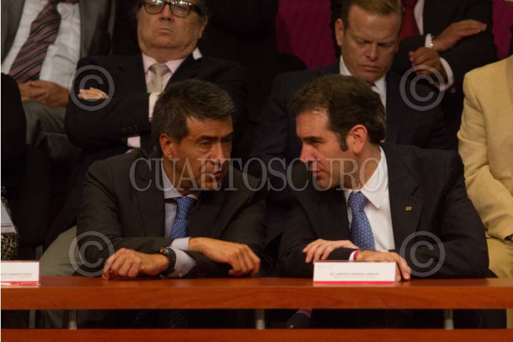 MÉXICO, D.F., 23JUNIO2015.- Enrique Peña Nieto, Presidente de México, y Miguel Barbosa, presidente de la mesa directiva del Senado, durante la instalación del Consejo del Sistema Nacional de Transparencia, Acceso a la Información y Protección de Datos Personales, en evento realizado en el WTC. FOTO: MOISÉS PABLO /CUARTOSCURO.COM