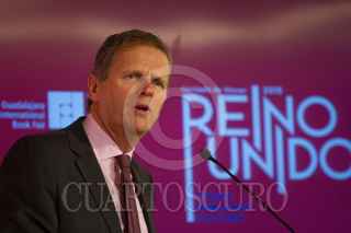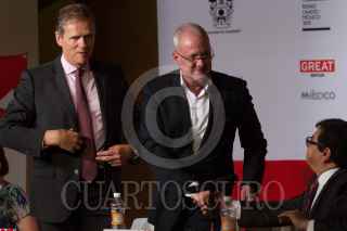 MÉXICO, D.F., 23JUNIO2015.- Marisol Shultz, directora general del FIl de Guadalajara, Duncan Taylor, embajador del Reino Unido en México y Raúl Padilla, presidente de la Feria Internacional de la feria del Libro de Guadalajara 2015 y Edgardo Bermejo, director de Artes British Council, durante la conferencia de prensa en la cual hablaron del Año Dual del Reino Unido y México 2015, ahí hablaron sobre el extenso programa de actividades para acercar al público mexicano a la gran oferta cultural, artística, educativa y comercial de los territorios que los integran: Irlanda del Norte, Gales, Escocia y las diversas regiones de Inglaterra. Del 28 de noviembre al 6 de diciembre de 2015, la ciudad de Guadalajara será testigo de una delegación británica con más de 150 escritores, académicos, artistas y representantes de casas editoriales que compartirán con México la herencia y diversidad cultural del Reino Unido. FOTO: MOISÉS PABLO /CUARTOSCURO.COM