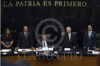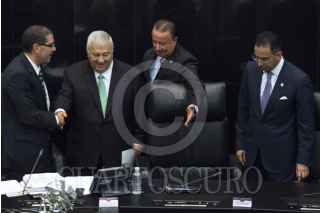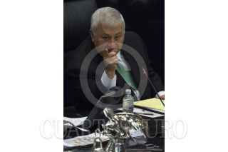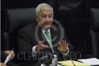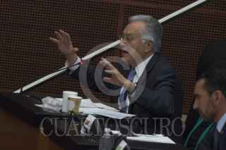 MÉXICO, D.F., 23JUNIO2015.- Manuel Bartlet senador del PT durante la comparecencia de Emilio Chuayffet Chemor, Secretario de Educación Pública en la Cuarta Reunion Ordinaria de la Segunda Comisión de la Comisión Permanente Relaciones Exteriores, Defensa Nacional y Educación dentro del edificio del Senado de la República. FOTO: ENRIQUE ORDÓÑEZ /CUARTOSCURO.COM
