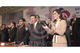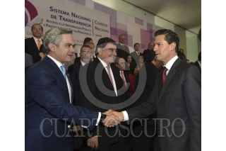 MÉXICO, D.F., 23JUNIO2015.- Al encabezar la ceremonia de instalación del Consejo del Sistema Nacional de Transparencia, Acceso a la Información y Protección de Datos Personales, el Presidente Enrique Peña Nieto destacó que el Consejo instalado hoy contará con el respaldo, el compromiso y la participación de todos para estar a la altura de los desafíos que se le presenten. “Sepan que cuentan con el compromiso y el respaldo del Gobierno de la República”, subrayó. En la imagen el mandatario saluda a Miguel Ángel Mancera, jefe de Gobierno. FOTO: PRESIDENCIA /CUARTOSCURO.COM