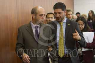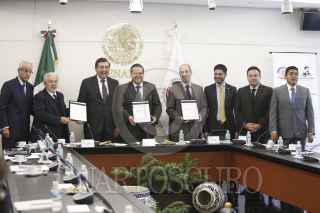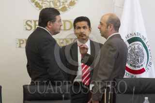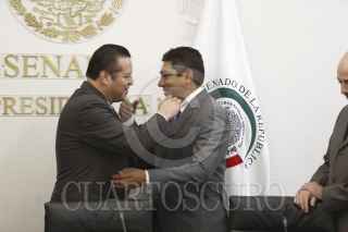 MÉXICO, D.F., 24JUNIO2015.- El senador panistas Fernando Herrera y Pedro Salazar Ugarte, director del Instituto de Investigaciones Jurídicas de la UNAM, encabezaron la firma de convenio entre el Instituto Belisario Domínguez y el IIJ de la Máxima Casa de Estudios, en el Senado de la República. FOTO: CUARTOSCURO.COM