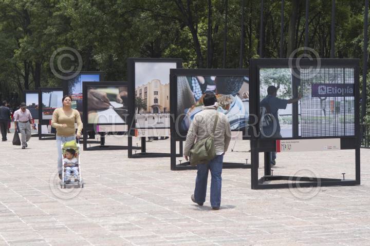 MÉXICO, D.F., 24JUNIO2015.- Guillermo Calderón, director del Metrobus y Rufino León Tovar, secretario de Movilidad del Distrito Federal, inauguraron una exposición fotográfica conmemorativa por los diez años del Metrobus en el Bosque de Chapultepec. FOTO: MOISÉS PABLO /CUARTOSCURO.COM