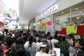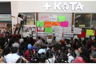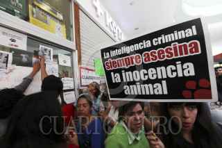 PACHUCA, HIDALGO, 24JUNIO2015.- Luego que se viralizaron videos de maltrato animal en la tienda +Kota de Plaza Galería de esta ciudad, la PROESPA clausuro la tienda. Alrededor de las 11 de la mañana se colocaron sellos de clausura en medio de las protestas de alrededor de 600 defensores de los derechos de los animales. FOTO: JORGE ALLEC /CUARTOSCURO.COM