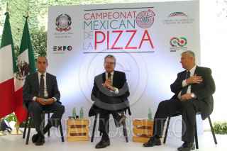 MÉXICO, D.F., 25JUNIO2015.- Alessandro Busacca, embajador de Italia en México, Alberico Peyron, presidente de la Cámara de Comercio Italiana en México y Ezio Chiai, representante de la Accademia Italiana della Cucina, presentaron el primer "Campeonato Mexicano de la Pizza, a realizarse en el mes de octubre. Competencia abierta a todos los pizzeros de la República tiene como fin que la gente conozca la verdadera pizza italiana pero también reconocer las variantes mexicanas creadas en el país. FOTO: ADOLFO VLADIMIR /CUARTOSCURO.COM