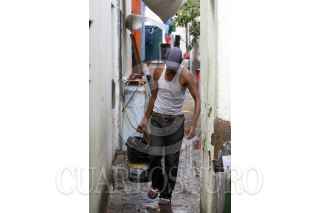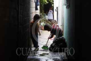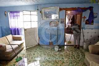GUADALAJARA, JALISCO. 25JUNIO2015.- Alrededor de 757 viviendas se han visto afectadas por las ultimas lluvias que han azotado la zona metropolitana, ya que miles de personas en las colonias mas vulnerables han perdido gran parte de su patrimonio por las inundaciones a causa de las fuertes tormentas registradas en lo que va del temporal. En la imagen un niño apoya en las labores de limpieza de su hogar, en la Colonia el Deán. FOTO: FERNANDO CARRANZA GARCIA / CUARTOSCURO.COM