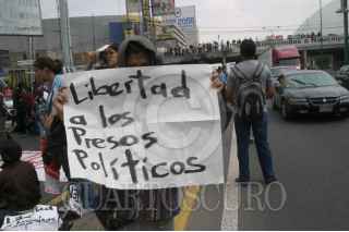 NAUCALPAN ESTADO DE MEXICO11MAYO2006.- Estudiantes de la FES Acatlán y el CCH Naucalpan marcharon por la lateral de periferico hasta los limites con el D.F. exigen la liberación de los presos de San Salvador Atenco. FOTO: Nelly Salas/CUARTOSCURO.COM