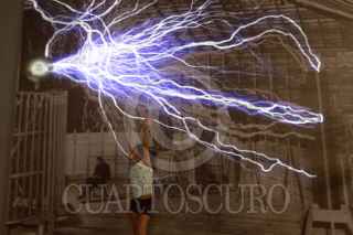 MONTERREY, NUEVO LEÓN, 25JUNIO2015.- Se llevó a cabo la inauguración de la exposición "El futuro me pertenece: Nikola Tesla", en donde se exhiben imagenes e información acerca del inventor serbio-americano Nikola Tesla en la Nave Generadores dentro de las instalaciones del Parque Fundidora. FOTO: GABRIELA PÉREZ MONTIEL / CUARTOSCURO.COM