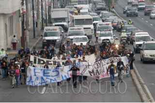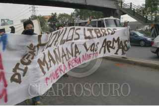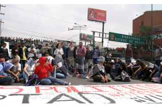 NAUCALPAN ESTADO DE MEXICO11MAYO2006.- Estudiantes de la FES Acatlán y el CCH Naucalpan marcharon por la lateral de periferico hasta los limites con el D.F. exigen la liberación de los presos de San Salvador Atenco. FOTO: Nelly Salas/CUARTOSCURO.COM