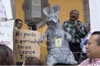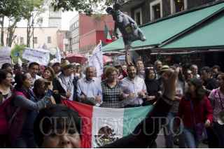 MÉXICO, D.F., 27JUNIO2015.-Simpatizantes de Morena realizaron un mitín y una caminata frente al edificio de la delegación Coyoacán por el Parque Hidalgo exigiendo el conteo de votos por el supuesto fraude electoral en esa delegación. Bertha Luján, candidata a delegada, junto con Martí Batres, presidente del partido, expresaron su inconformidad con los resultados de elecciones y exigieron las sanciones correspondientes por 15 atentados durante su campaña política. FOTO: GALO CAÑAS /CUARTOSCURO.COM