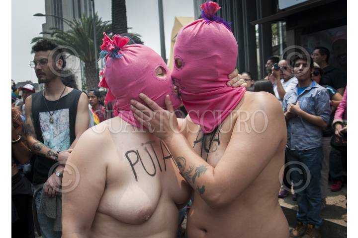 MÉXICO, D.F., 27JUNIO2015.- Aspectos de la XXXVII Marcha Lésbico, Gay, Bisexual, Travesti, Transexual, Transgénero e Intersexual que partió del Ángel de la Independencia hacía el Zócalo de la ciudad. Al termino de la marcha un grupo de participantes alcoholizados se pelearon por celos entre parejas. FOTO: RUBÉN ESPINOSA / CUARTOSCURO.COM