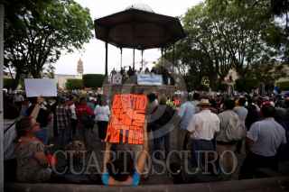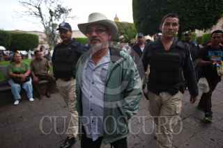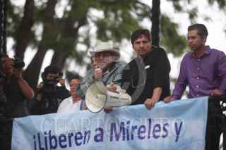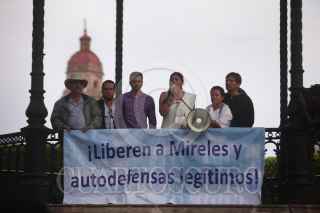 MORELIA, MICHOACÁN, 27JUNIO2015.- Hipólito Mora y Virginia Mireles asistieron a la Plaza de Armas del centro de la ciudad para exigir la libertad de José Manuel Mireles Valverde a un año de su encarcelamiento en la comunidad de La Mira. En el lugar se registró poca asistencia. FOTO: ALAN ORTEGA /CUARTOSCURO.COM