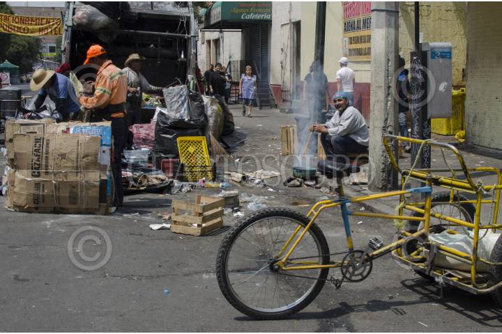 MÉXICO, D.F., 28JUNIO2015.- Ángel Zúñiga se encarga, junto con su equipo de trabajo, de recoger la basura del sector en las inmeadiaciones del Mercado de San Lucas. A la hora de la merienda y al calor de una fogata callejera, prepara unos huevos "a la mexicana" mientras los demás continúan recogiendo la basura que nadie ha de extrañar. FOTO: MARÍA JOSÉ MARTÍNEZ /CUARTOSCURO.COM