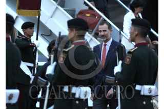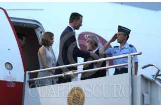 MÉXICO, D.F., 28JUNIO2015.- El rey de España, Felipe VI y su esposa, la Reyna Letizia, durante su arribo al aeropuerto de la Ciudad de México, para su visita oficial al país. FOTO: ADOLFO VLADIMIR /CUARTOSCURO.COM
