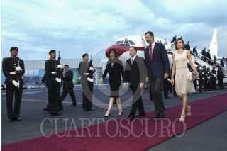 MÉXICO, D.F., 28JUNIO2015.- Los Reyes de España, Felipe VI y doña Letizia, arribaron la noche de este domingo a la ciudad de México para iniciar una visita de Estado a nuestro país, que concluirá el 1 de julio. En el hangar presidencial fueron recibidos por el secretario de Relaciones Exteriores, José Antonio Meade Kuribreña. Se trata de la primera visita de Estado que realiza el Rey Felipe VI a un país del Continente Americano, desde su proclamación como monarca español en junio de 2014. Como parte de su agenda en nuestro país, los Reyes de España se reunirán con el Presidente Enrique Peña Nieto, acudirán a una sesión solemne del Senado de la República y visitarán la ciudad de Zacatecas, entre otras actividades. FOTO: SRE /CUARTOSCURO.COM