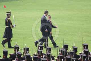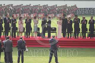 MÉXICO, D.F., 29JUNIO15.- Enrique Peña Nieto, presidente de México y su esposa Angélica Rivera, dieron la bienvenida en ceremonia de honor en el Campo Marte, a Felipe VI y Letizia, reyes de España, durante su visita oficial al país. FOTO: ADOLFO VLADIMIR / CUARTOSCURO.COM