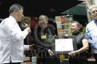 MÉXICO, D.F., 29JUNIO2015.- Personal de la Secretaria de Salud, realizaron campañas en contra del Tabaquismo en los principales corredores turísticos del Centro Histórico, al termino del recorrido entregaron reconocimientos a establecimientos que cumplieron con la ley anti-tabaco. FOTO: SAÚL LÓPEZ /CUARTOSCURO.COM