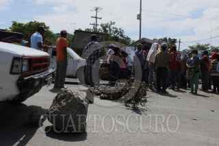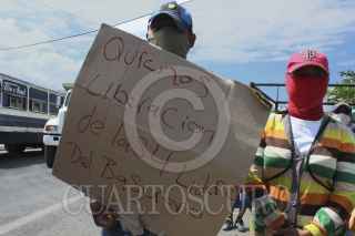 CHILPANCINGO, GUERRERO 29 JUNIO 2015.- Pepenadores del basurero municipal bloquearon la carretera federal México – Acapulco, a la altura de la colonia La Cinca, para exigir a la policía comunitaria del Frente Unidos por la Seguridad y de desarrollo del Estado de Guerrero (FUSDEG) y al gobierno del estado su intervención, para la liberación de sus compañeros. FOTO: JOSÉ I. HERNÁNDEZ /CUARTOSCURO.COM
