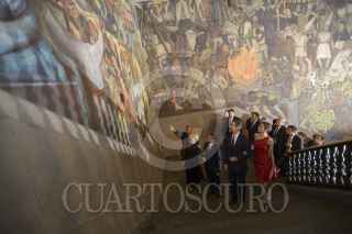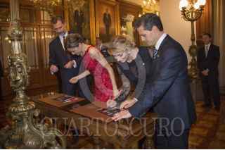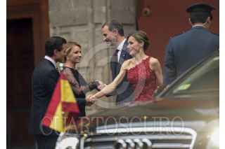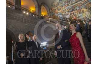 México, D.F., 29 JUNIO2015.- El Presidente Enrique Peña Nieto, acompañado de su esposa, Angélica Rivera, ofrecieron hoy una cena en honor a los Reyes de España, Felipe VI y Letizia, en el Palacio Nacional. Durante la ceremonia, el Ejecutivo mencionó que “España y México comparten una historia que se entrelaza, una identidad común, inquebrantables lazos fraternos". FOTO: PRESIDENCIA /CUARTOSCURO.COM