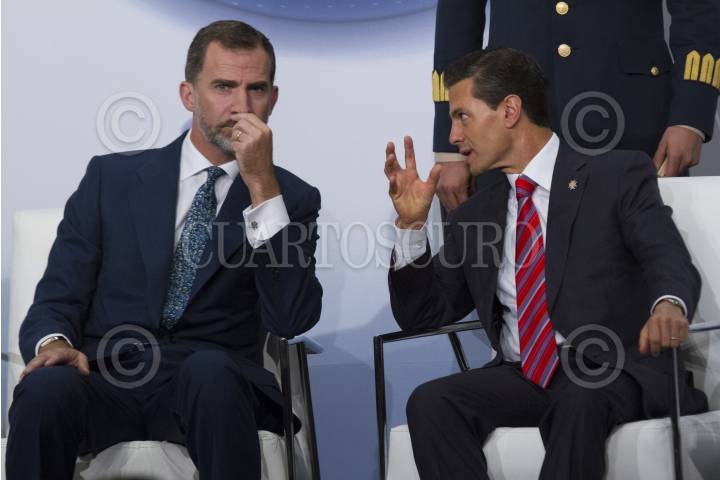 MÉXICO, D.F., 30JUNIO2015.- El Rey Felipe VI y Enrique Peña Nieto, Presidente de México, durante el encuentro empresarial México España "El Momento" que se realizó en un hotel de Polanco. FOTO: MOISÉS PABLO /CUARTOSCURO.COM